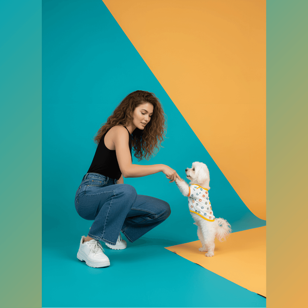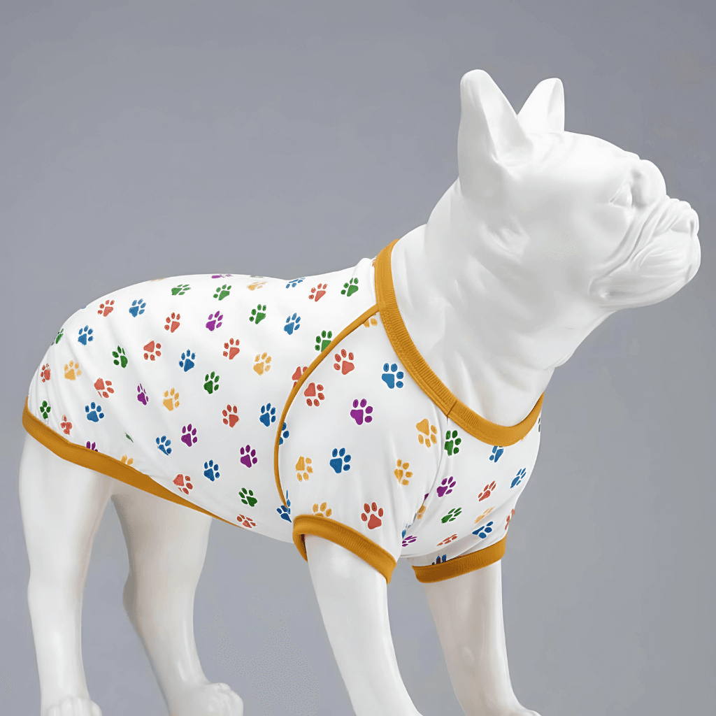 With its lively pattern of colorful paw prints and the sophisticated contrast created by the mustard trim, this tank top perfectly blends your companion’s energetic spirit with eye-catching style. Whether on a joyful run in the park or a stylish stroll in the city, this tank top will radiate your companion’s positive energy without compromising on flair. This meaningful design finds perfect balance with the unparalleled comfort and benefits it provides the moment it touches their skin.